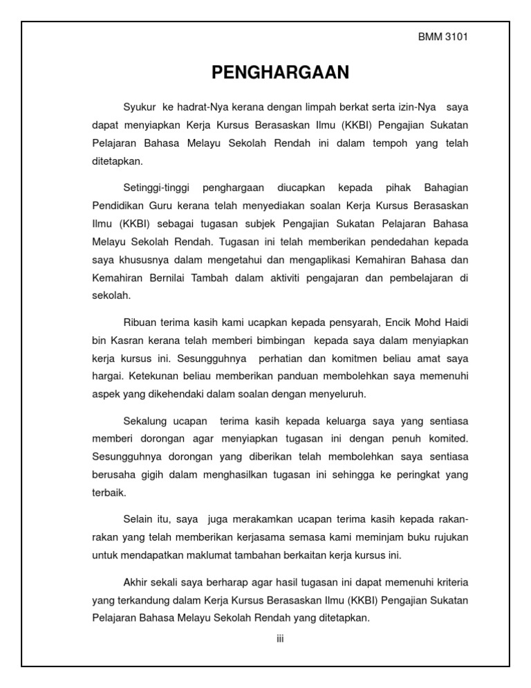 Penghargaan Bm Kerja Kursus Bm Pdf